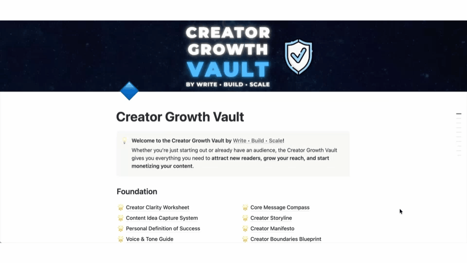 Inside the Creator Growth Vault, you’ll find: