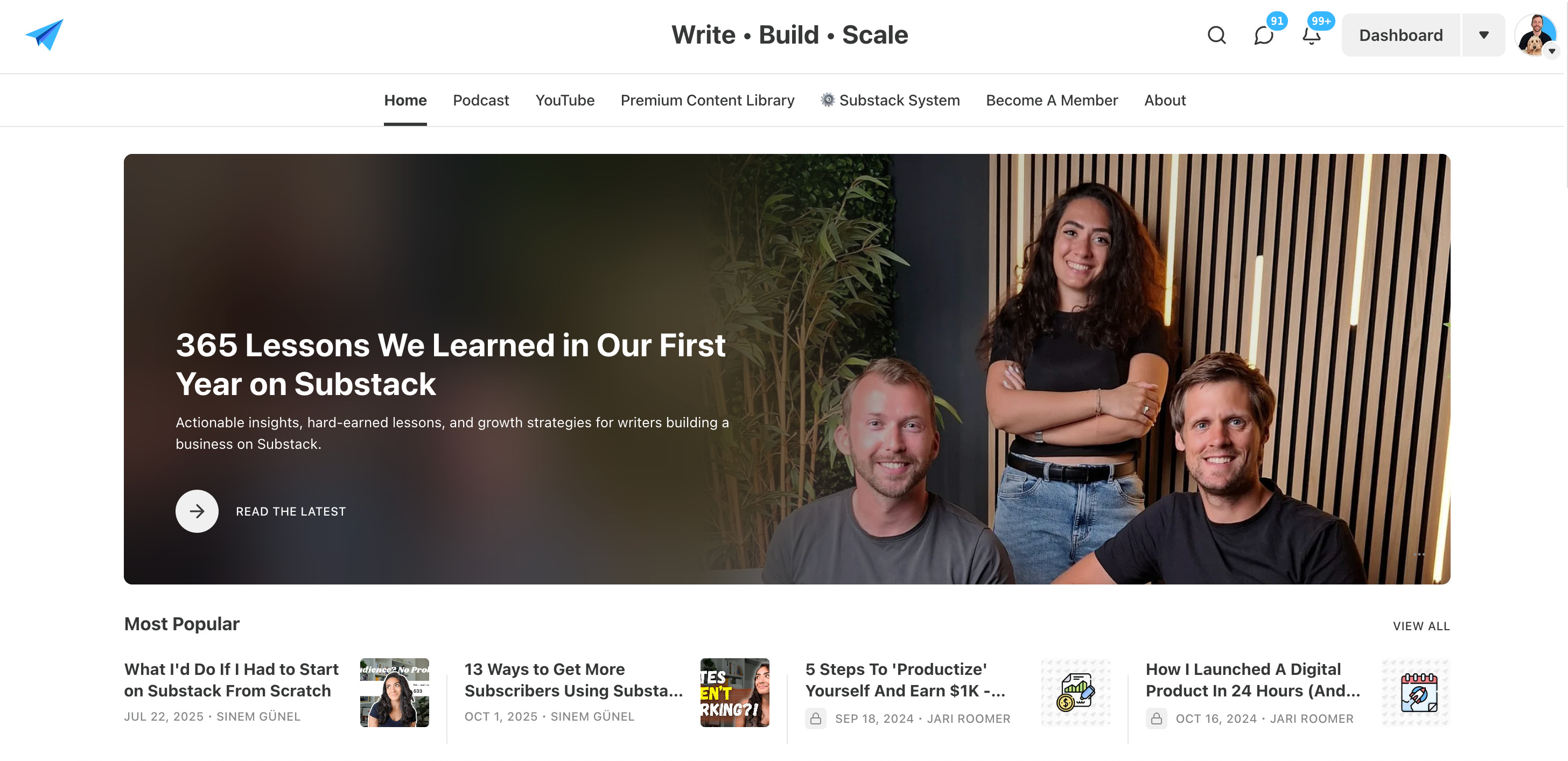 Another key step is to design your publication’s homepage so it has a professional look and feel - and it clearly shows new readers if your publication is right for them.
