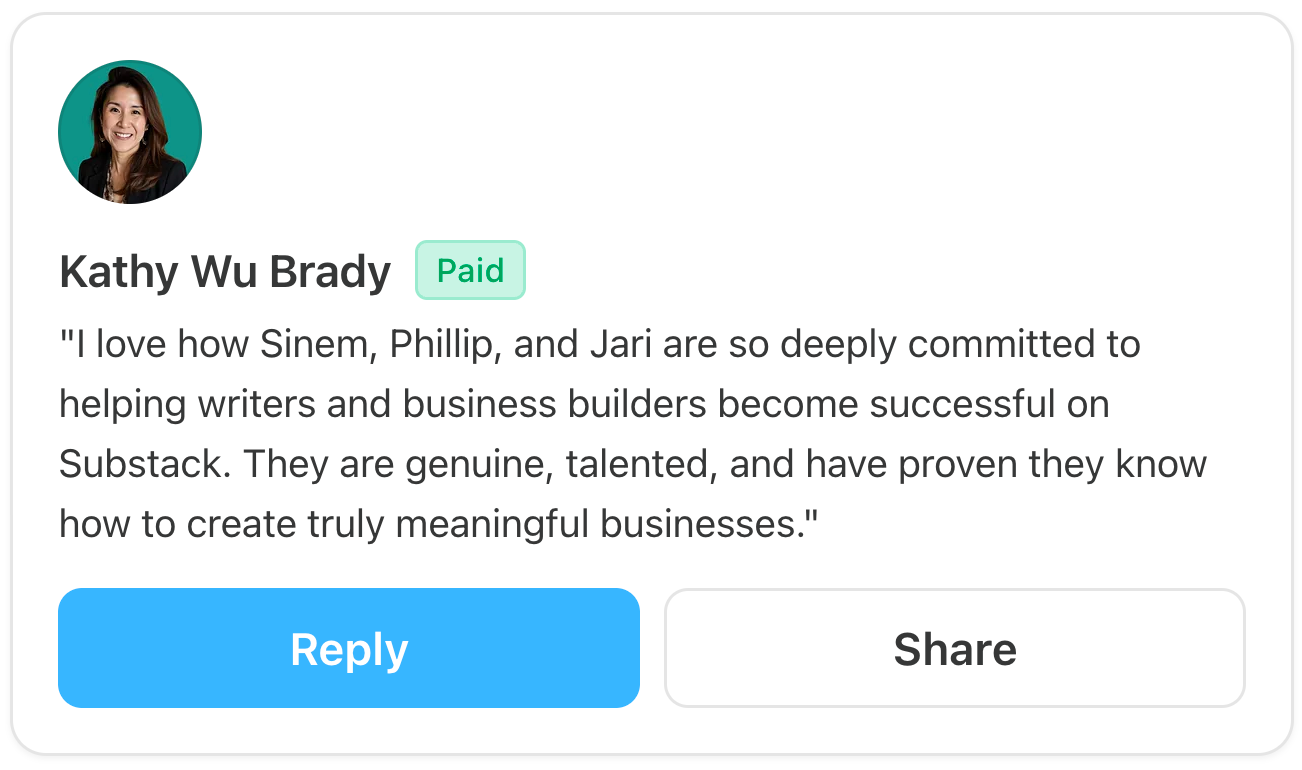 This is exactly what you’ll get as a paid member of the Write • Build • Scale publication: