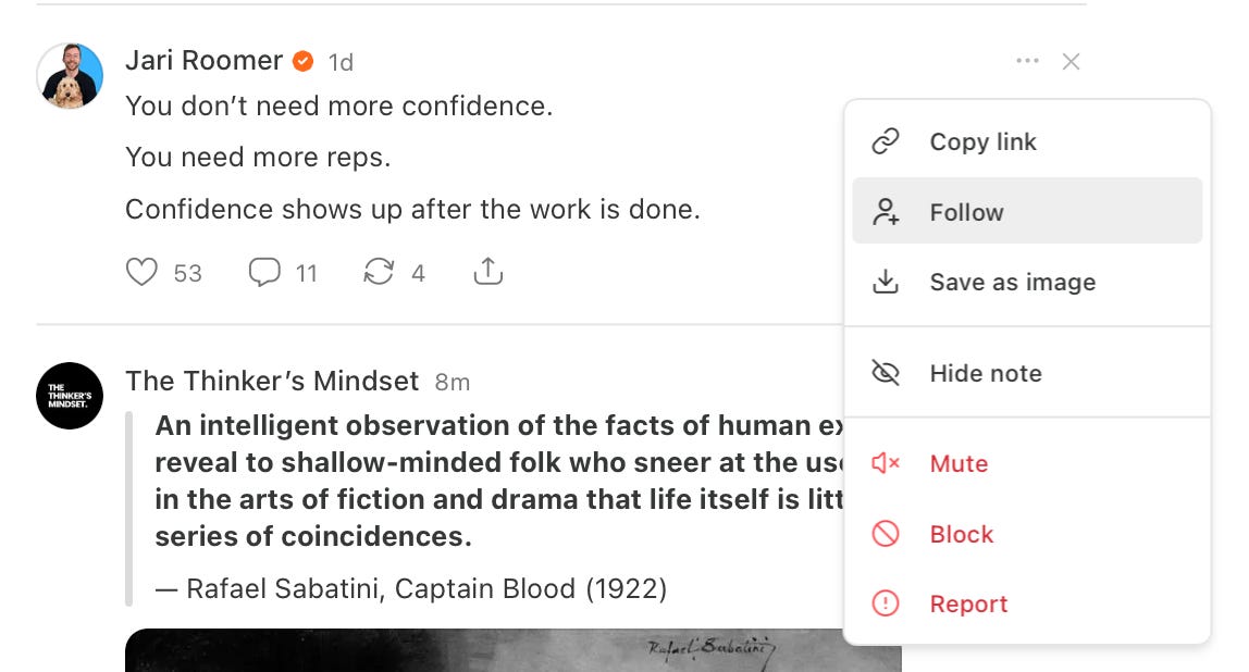 When you post a Note, it can be seen by people who have never heard of you before. Maybe they follow someone who engaged with your Note. Maybe they’re browsing a topic category you posted in. Maybe the algorithm just served it up because it matched their interests.