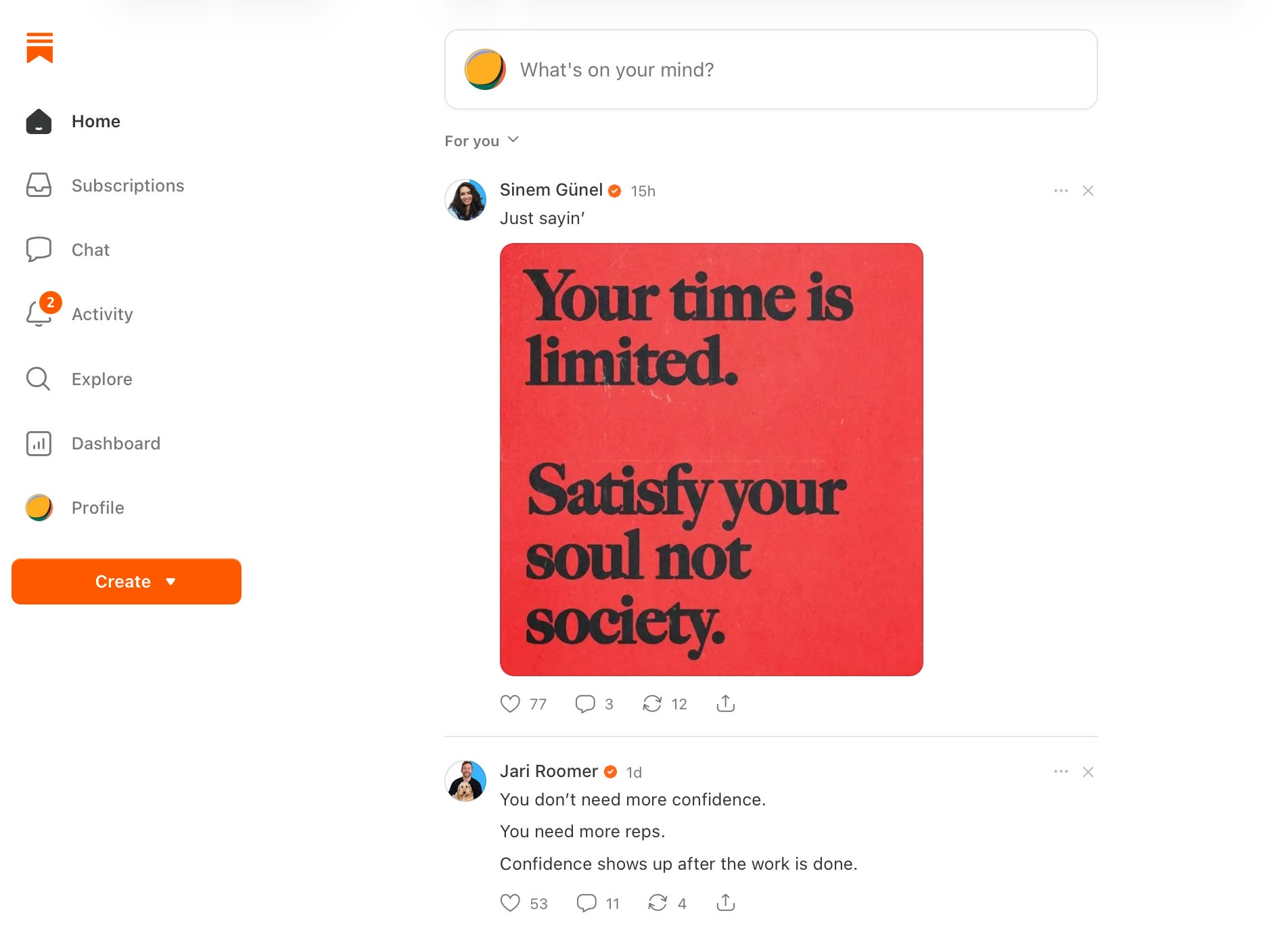 This is basically an infinite social media feed where you see Notes from creators you might already be connected with, or whom the Substack algorithm thinks you might like.
