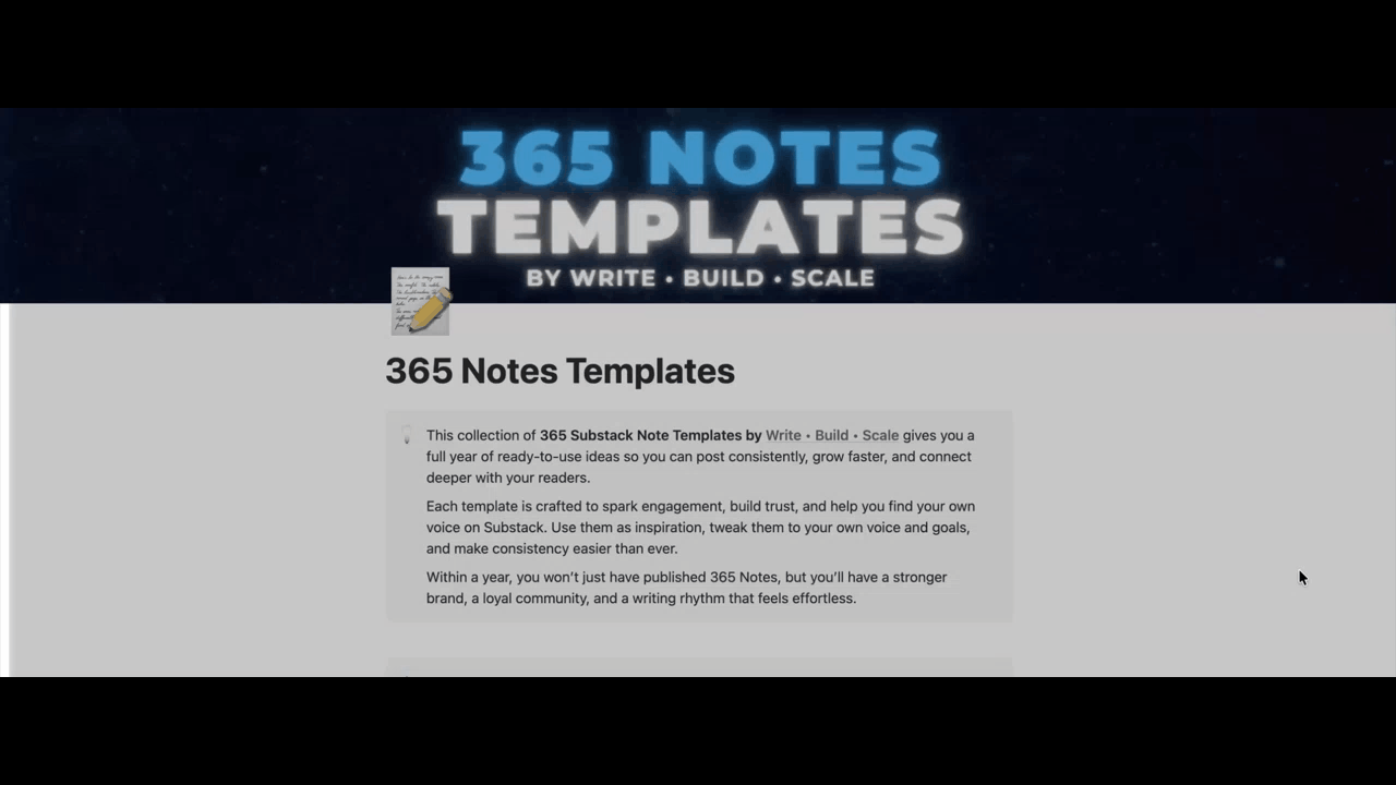 With these 365 Notes templates, you’ll have a full year's worth of Substack Notes ready in no time, so you will: