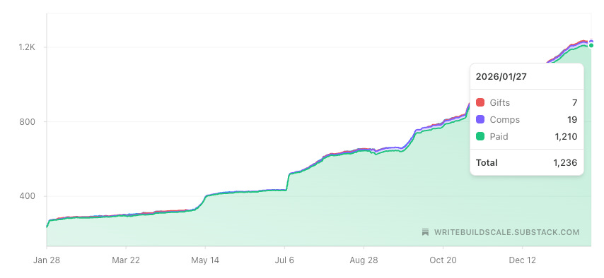 Over the past 18 months, we’ve grown the Write • Build • Scale publication on Substack to over 1,000 paid subscribers.